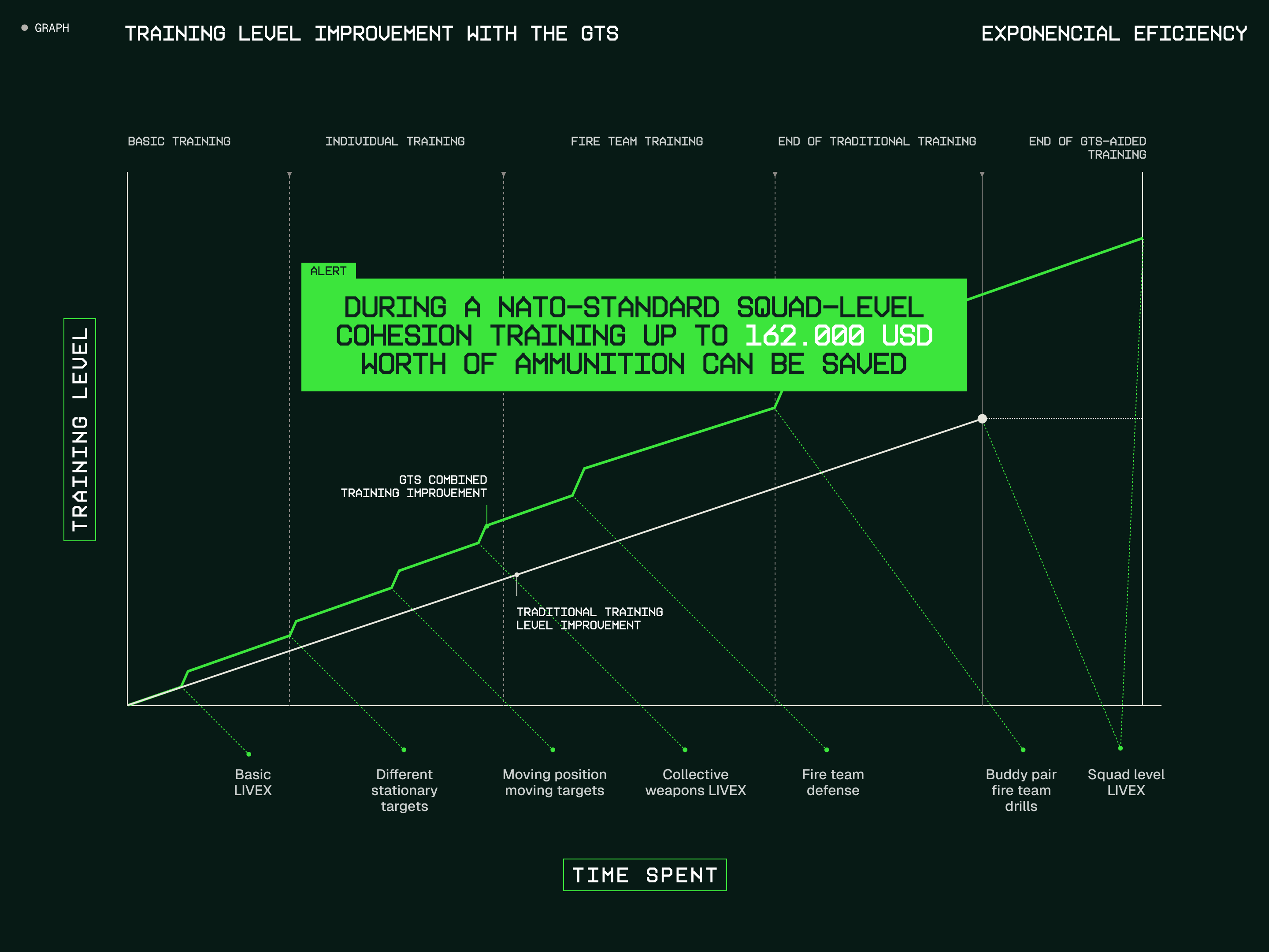 In nowadays armed conflicts the infantry is still the queen of the battlefield, but it is not enough to be a good shooter. If you want to win, key competencies like understanding the tactical situation, issuing and reacting to orders under stress, decision-making are the key factors that decide the outcome of a battle. With the GTS system the military can practice these key competencies in an effective yet economic way.